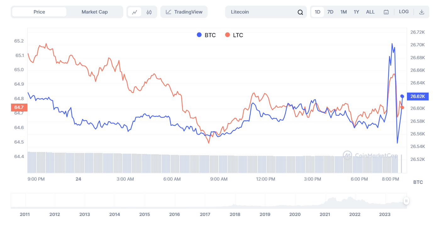 LTC/USD 1-D Chart. Screenshot taken from CoinMarketCap.