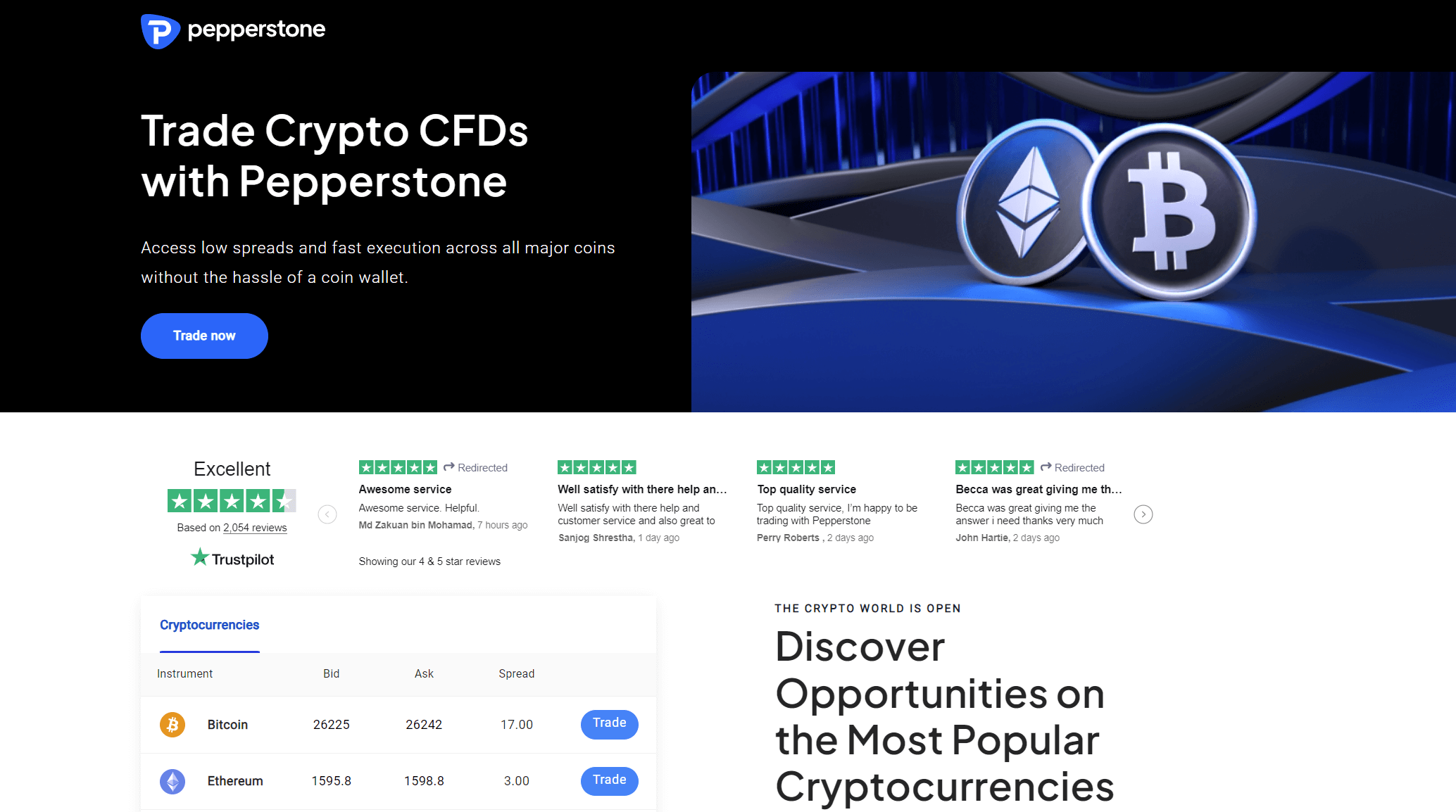 Pepperstone is a reputable broker known for its tight spreads, fast execution, and availability of over 1,200 trading instruments. The MT5 platform offered by Pepperstone is highly customizable, allowing traders to tailor their experience to their specific needs. On the MT5 platform, Pepperstone allows its traders to access CFDs on a plethora of cryptocurrencies. These include Bitcoin, Bitcoin Cash, Litecoin, Ethereum, Ripple, Polkadot, and more. These cryptos can be traded against major fiat currencies like the USD, EUR, GBP, and AUD. Positively, crypto assets can be traded with some of the most competitive spreads in the market.