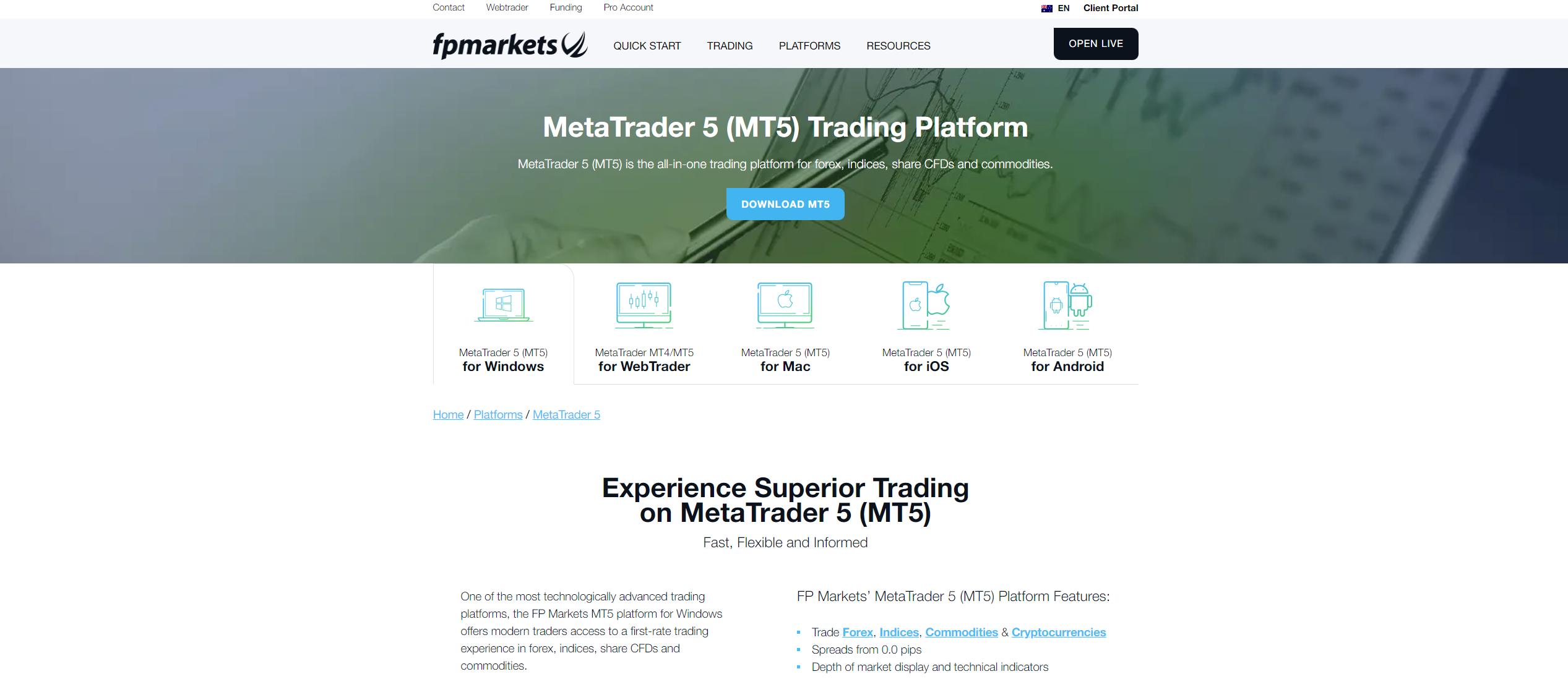 Fortunately, FP Markets features one of the best trading platforms on the planet. They offer crypto traders the MT5 platform for the fastest executions and a collection of Expert Advisors. On top of that, the MT5 provides customizable indicators and alerts. Further, FP Markets is suitable for both novice and expert traders. The company features an education section and a traders hub with educational material for traders. These are some of the things that make FP Markets a top-class MT5 crypto broker.