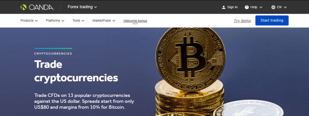 OANDA allows investors to trade CFDs on 13 popular cryptocurrencies. These 13 cryptos include Bitcoin, Bitcoin Cash, Ethereum, Litecoin, Binance Coin, Cardano, Chainlink, Dogecoin, Polkadot, EOS, Stellar, Tezos and Uniswap. Clients enjoy trading CFDs on these cryptos on the state-of-the-art platform, MT5. Interestingly, you can only trade these cryptos against the US Dollar on OANDA.