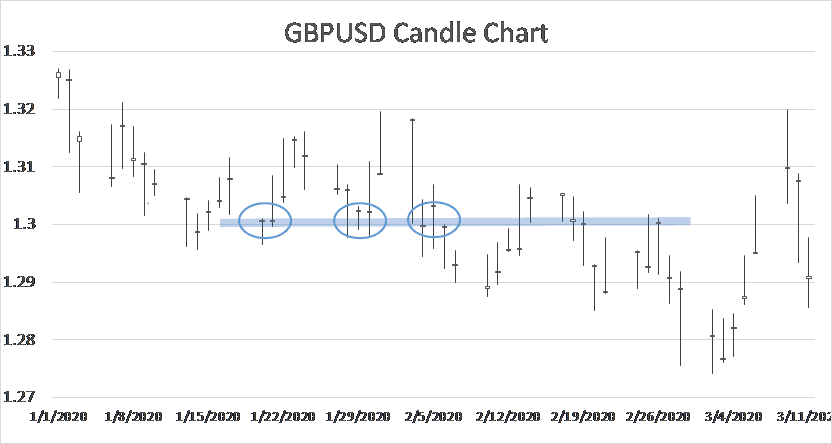 It might sound a bit confusing so let me illustrate with the GBPUSD example from above. As mentioned before, 1.3 was the support level for the currency pair between late January and early February. However, GBPUSD eventually breached the 1.3 support in early February. According to the change of polarity rule, the old 1.3 support level will now serve as the resistance. This level did become the new resistance for the currency pair later and pushed GBP lower after it failed to breach the resistance.